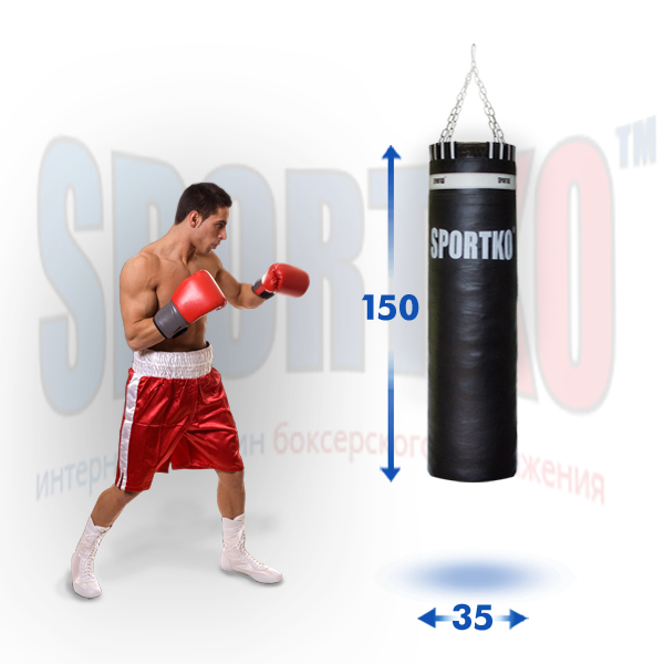 - Профессиональный боксерский мешок SPORTKO Олимпийский высота 150 ф35 вес 55кг с цепями.